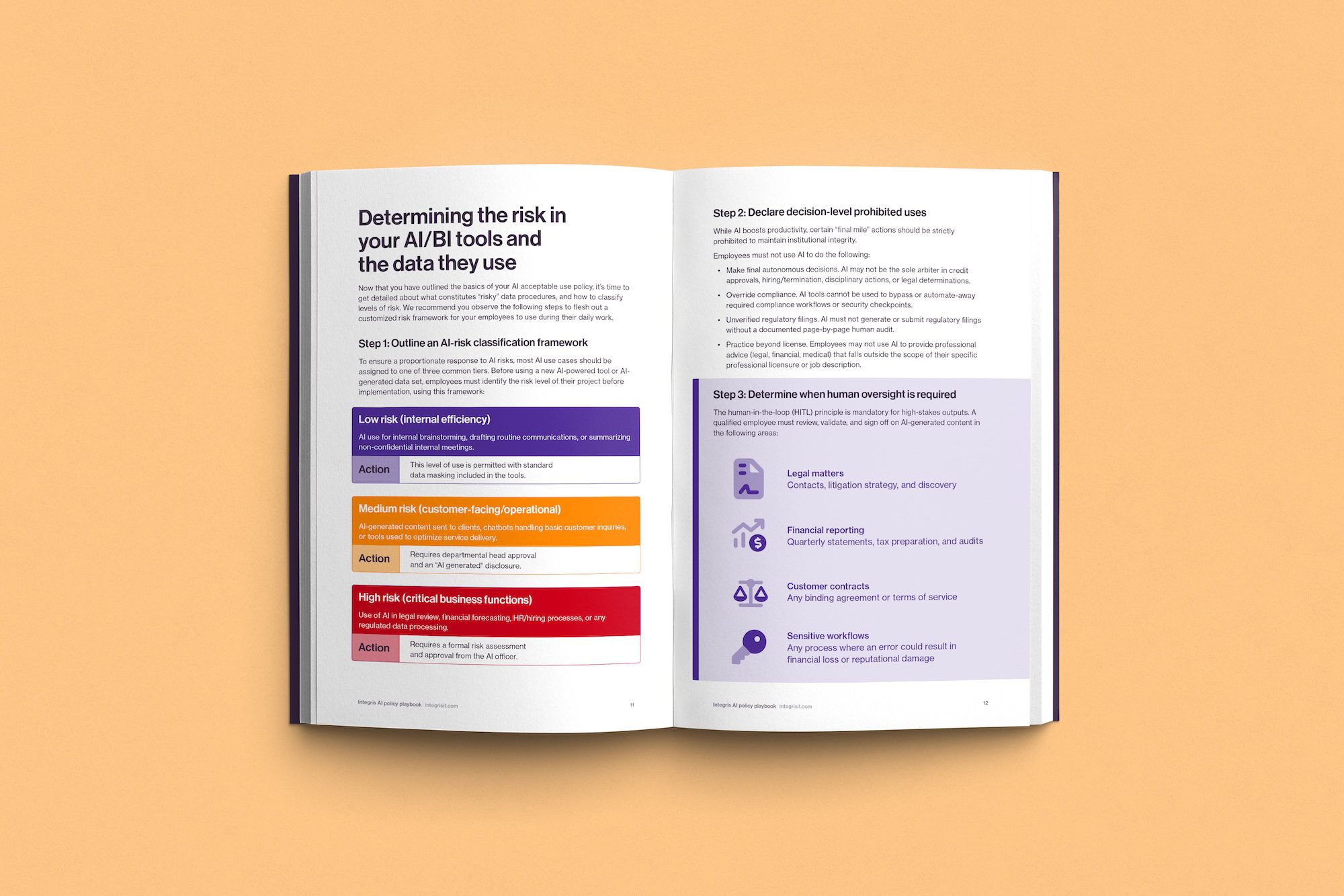 Our AI policy playbook gives you the framework to build an AI acceptable use policy that works for your organization's needs, along with two helpful worksheets related to AI risk. Get guidance on these AI challenges: